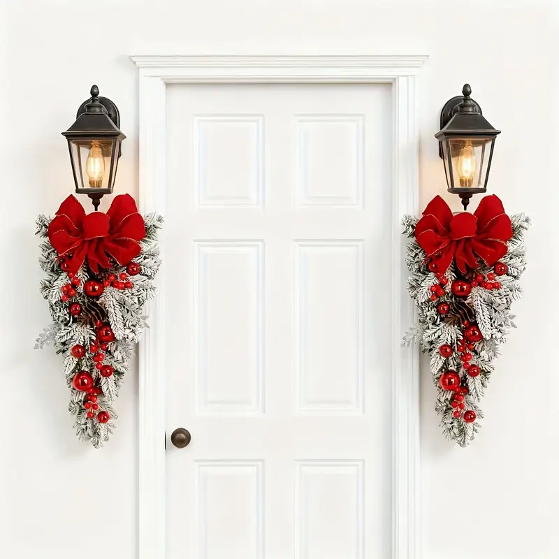 1pc/2pcs/3pcs/4pcs Couronne de Noël Nordique avec Nœud Rouge et Fougère Verte – 60cm/23.62″ Décoration Élégante pour Escaliers & Portes, Durable en Plastique Intérieur/Extérieur pour Noël, Mariages, Fêtes – Sans Plumes, Pas d’Électricité Requise, Utilisation Toute l’Année, Ornement Festif, Accent Décoratif à Longue Durée, Idéal pour Thanksgiving